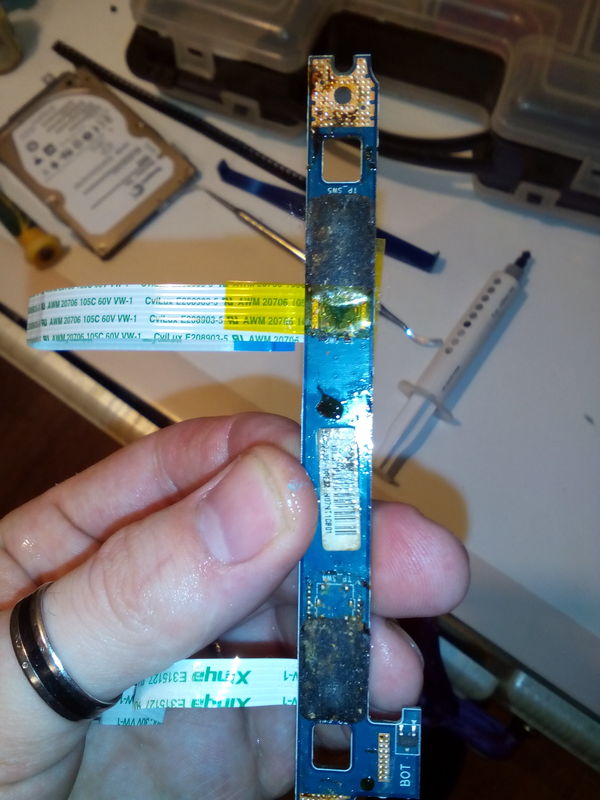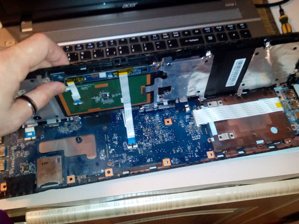 откидываем кусок топкейса с тачем. аккуратно, чтобы шлейфы не порвать)