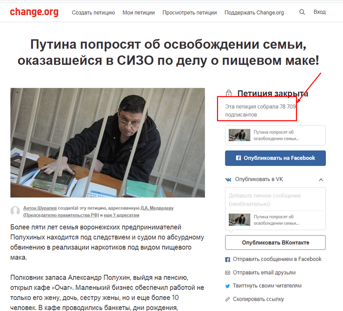 Левобережный суд Воронежа вынес приговор семье предпринимателей Полухиных, которые держали семейное кафе и 15 лет продавали в нем булочки с маком собственной выпечки. Четырех человек признали виновными в незаконном сбыте наркотических веществ. Александра Полухина — полковника запаса — приговорили к 8,5 годам колонии строгого режима, его дочь Евгению — к 8,5 годам в колонии общего режима. Жена Александра, пенсионерка Мария Полухина и ее сестра Нина Чурсина также получили по 8,5 лет в колонии общего режима.