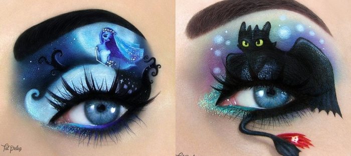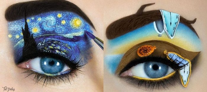 Казалось бы, ярким и необычным макияжем сейчас уже никого не удивишь. Однако работы Таль Пелег – визажистки из Израиля – назвать просто макияжем, пускай и красочным, вряд ли у кого-то повернется язык. Ведь ее работы – это настоящие произведения искусства, а в качества холста Таль Пелег использует собственные веки. Работа это кропотливая, и на один рисунок уходит порядка 2-3 часов.