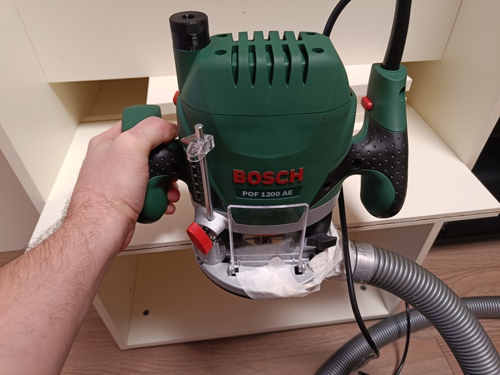 В торце деталей на производстве сделать пазы технической возможности нет. Урвал по скидке бюджетный фрезер Bosch, немного прокачал его с помощью 3Д печати до чуть старшей модели, а точнее добавил микролифт, сделал недостающие пазы: