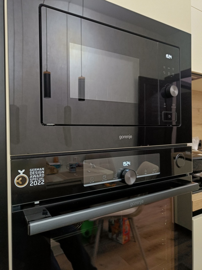 Третье, кто внимательный, думаю заметили большой зазор между духовкой и микроволновкой, ну тут я плохо изучил установочные чертежи, вернее лишнего надумал, чего не стоило. Сей досадный дефект (а он реально был для меня очень досадным) закрыл ал. уголком: