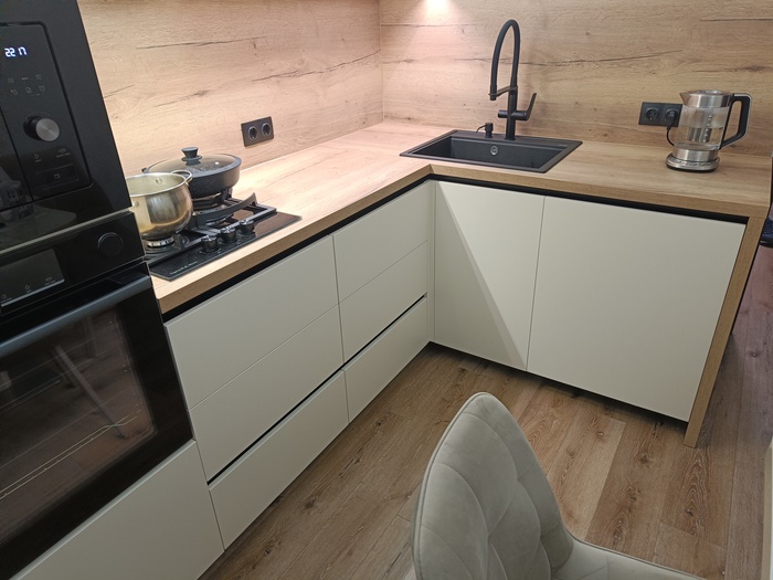 Похвастаюсь чтоль. На хобби пока ресурсов нет, потратил кучу средств, времени и сил на кап. ремонт квартиры. Самое главное что? Правильно, кухня. Готовые модульные решение было не интересно, надо четко в размер. Идти заказывать оч. дорого. Решено, буду делать сам. Ни разу не мебельщик, но чего тут боятся, конструктор ж, из плоских деталек ))))