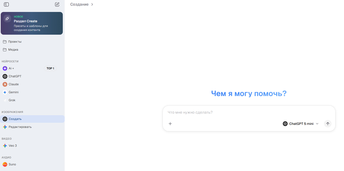 Работает как чат и генератор в одном окне — удобно для быстрой работы.