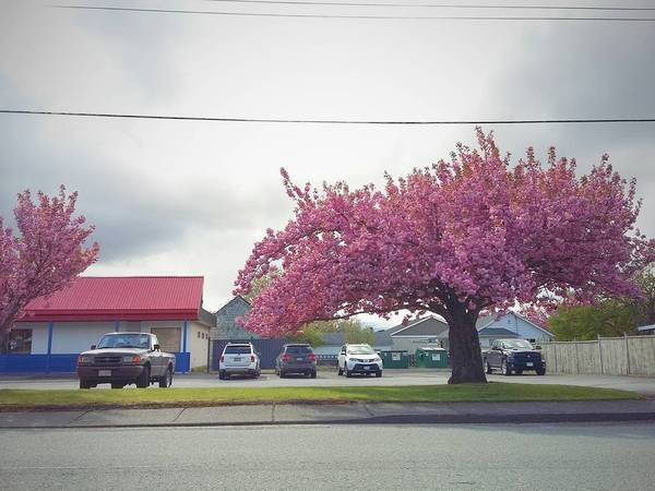 В первый день немного погуляли по району и отрубились: джетлаг, будь он неладен. На районе красиво, цветут вишни.