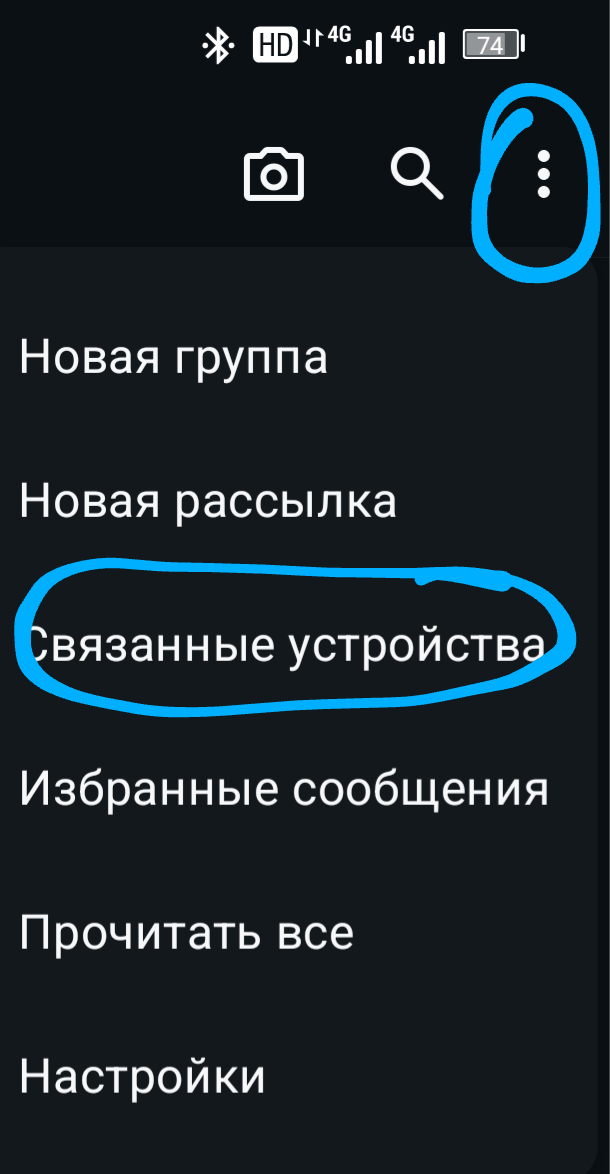 * На телефоне ребенка нажимаем "меню" (три точки), выбираем связывание устройства и сканируем куар код своего телефона:
