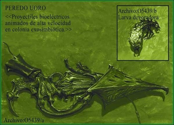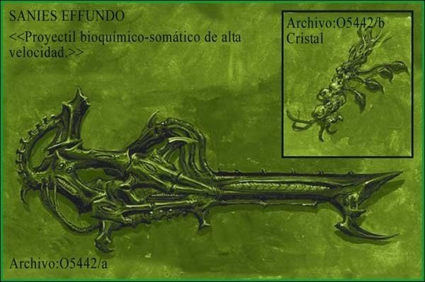 Это оружие больше похоже на рой, чем на отдельный организм. Оружие сцеплено с носителем таким образом, чтобы обеспечить питанием и условиями роста массу личинок Потрошителя с нарушенным развитием; эти личинки являются боеприпасом орудия. Большой конический рог прошит многочисленными дыхательными трубками, которые также становятся путями выхода в минуту опасности. Сигнальные феромоны вызывают личинки в дыхательные трубки, когда носитель испытывает нужду использовать оружие. Биоэлектрический импульс дает выводку сигнал к атаке. Встретив любой объект, он начинает яростную атаку, кусая и протачивая, и одновременно выделяя крайне едкую желчь. Эти твари демонстрируют явное предпочтение к нервным тканям, и крайне быстро продвигаются к спинному и головному мозгу, вызывая мучительную, но милосердно быструю смерть.