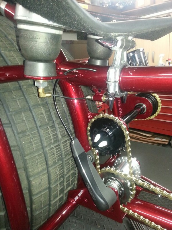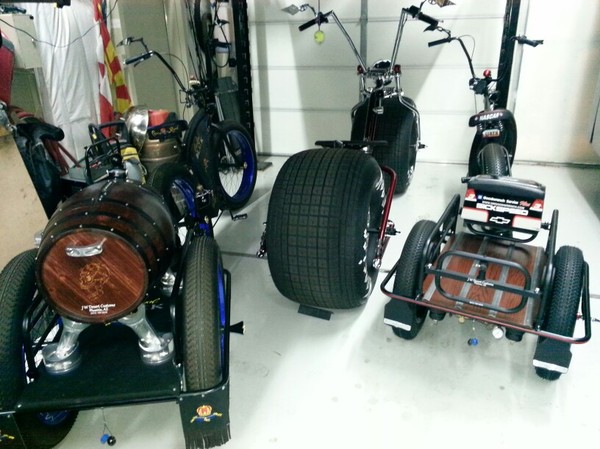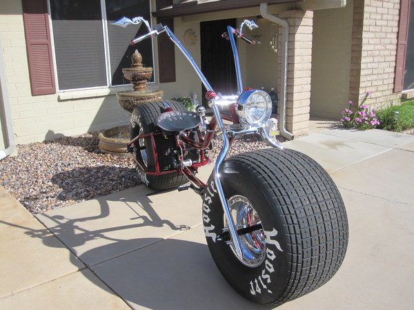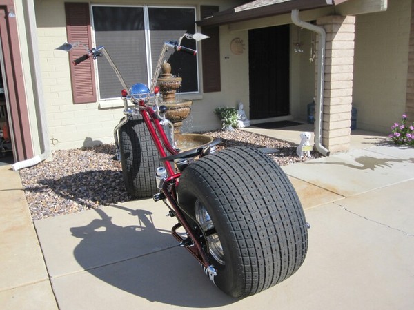Не знаете на какой ширине колес остановиться для своего толстячка? 2015 NASCAR Fat Tire Bike показывает прекрасные результаты на автомобильных дисках 15"x 17" Weld Bead Lock rims с покрышками 33"x 20". Те, кто думают, что педали крутить тяжело - на байке установлена 5-ступенчатая планетарная втулка и понижающий редуктор. Мотоциклетная фара переделана под 9 В светодиод. Сиденье со старого садового трактора. Тормозов мало не бывает! На переднее колесо установлены гидравлические тормоза с Honda 250r.