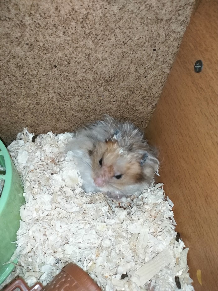 Сирийский хомячок, у меня он 6 месяцев и 4 дня. Имя:Куки(в переводе с англ.Печенька, так назвала потому, что цвет некоторых участков его шерсти напоминает симпотишную печенюшку). Днём отсыпается, ночью бегает в колесе, если двери комнат в кв.открыты то скрип колеса слышен даже за стенкой. Очень любит руки, ластится, за всё время кусал раза 2, боится кошку, не любит когда его трогает кто-то кроме меня.