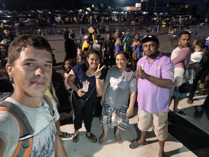 Когда уже начало темнеть, какой-то парень вышел перед толпой, ожидающей паром, и начал разгорячённую проповедь в микрофон. Судя по всему, он говорил о Боге, о том, что сейчас самое время сплотиться, что «мы братья». Без контекста сложно уловить суть.