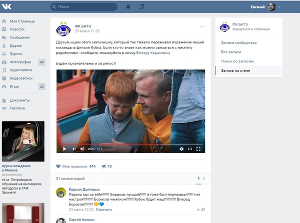 Через день официальный паблик вконтакте проигравшей команды объявил о поиске мальчика. Десятки и сотни репостов, парня, кажется, стала искать вся страна