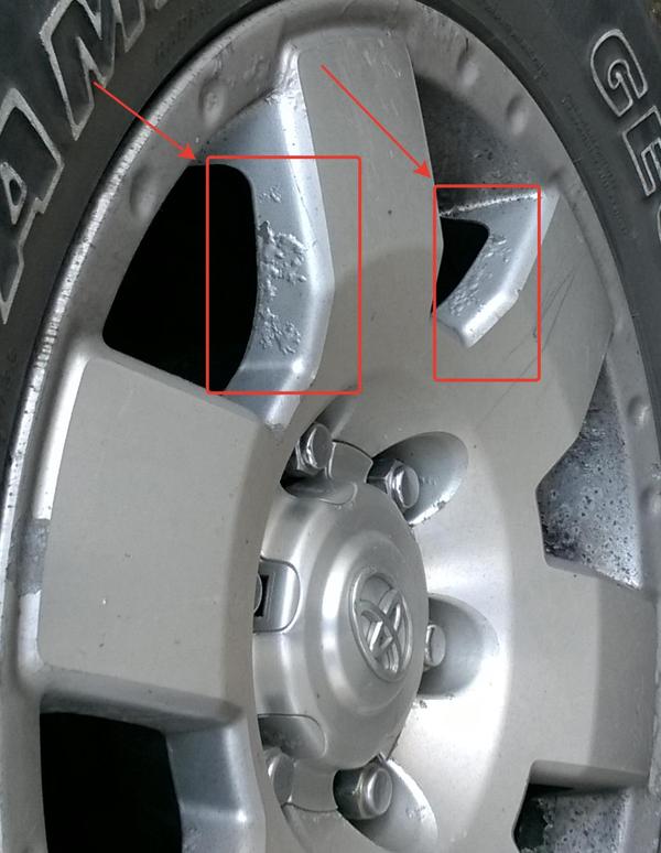 1. Диск ломается, не выдержав нагрузку. В этом случае, если диски сломался не при ударе на скорости более 60 км/ч, например о бордюр, речь идет о действительно некачественном и даже опасном диске. Тест на косой удар (в прошлом посте http://pikabu.ru/story/kitayskie_diski_deystvitelno_li_oni_t...) выявил как раз такие диски низкого качества. Важно помнить также, что у дисков есть такой параметр как максимально допустимая нагрузка, которая для легковых авто составляет обычно около 600-700 кг, а для тяжелых внедорожников, например Toyota Land Cruiser – 900 или 1000 кг. Неправильно подобранный по этому параметру диск может не выдержать даже обычных нагрузок.