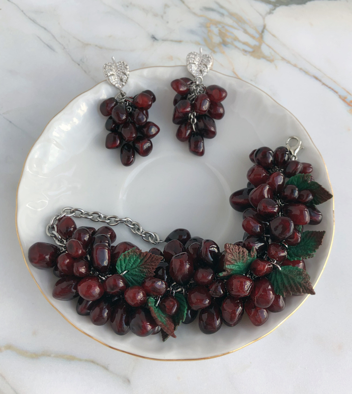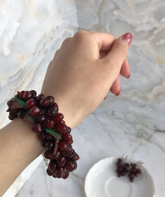 Привет! хочется показать вкусный гранатовый комплект( серьги + браслет). Сейчас лето, такой яркий и вкусный комплект подойдет к любому наряду и подчеркнет его.