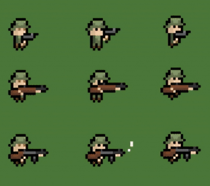 Теги: 2D, военный, пиксель-арт, солдат, спрайты, тайлсет, вид сверху, война, Вторая мировая война