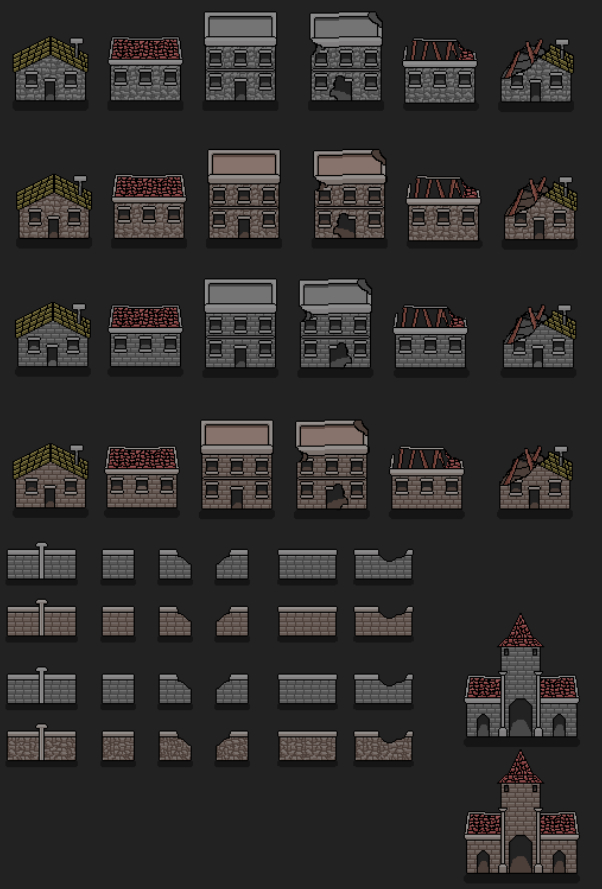 - Наборы тайлов, реквизит, дома и т. д. в тематике полей сражений Второй мировой войны: