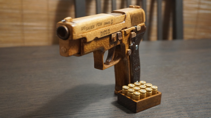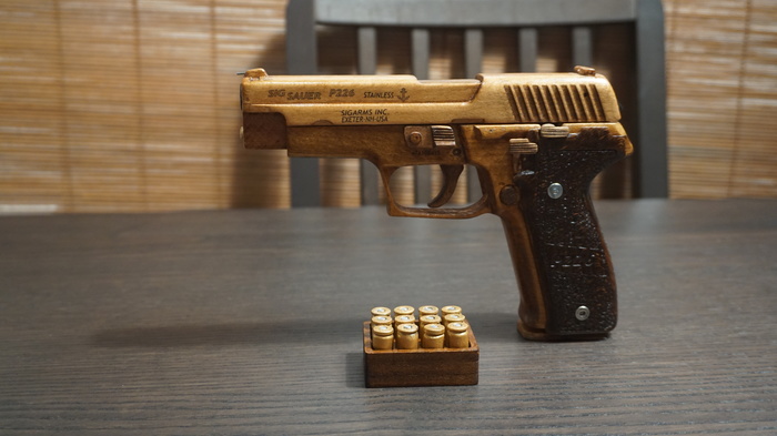 Недавно закончил свой очередной проект – немецко-швейцарский SigSauer P226. Пистолет засветился в огромном количестве фильмов и сериалов, на вскидку: Крепкий орешек , Миссия невыполнима, Секретные материалы, Рэмбо, чаще всего в руках плохишей. Внешний вид мне нравится больше чем у глока, к тому же P226 одного со мной года рождения, надо было делать.