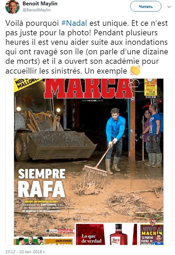 Теннисный мир сейчас тоже поддерживает Мальорку: после выигранных матчей в Шанхае обращения к пострадавшим записали Новак Джокович и Александр Зверев. Новак отдельно отправил Надалю «крепкие объятья и дружеский привет. Молодец, амиго, что помогаешь».