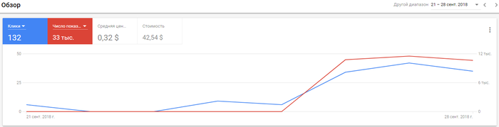 3 неделя. КМС до сих пор нету, мое раздражение и упреки в адрес компании Webmate стали чаще звучать, но Владислав со спокойствием удава не подавал виду и пытался оправдаться, что все по плану и КМС обязательно сработает. У него бывало, что он гасился (тупо игнорил) от меня и тогда я звонил к ним в офис и произносил волшебную фразу менеджеру: «Дайте мне директора, вас беспокоит СПЕЦКАЗТРЕЙД», и Владислав тут же объявлялся потому что не хотел разочаровывать директора, кстати, его зовут Ярослав, но о нем позже. Где-то к концу третий недели КМС наконец-таки заработала ( на третей недели работы, КАРЛ!).Ну как заработала… она существовала, давайте так назовем. Статистика по показам и кликам: