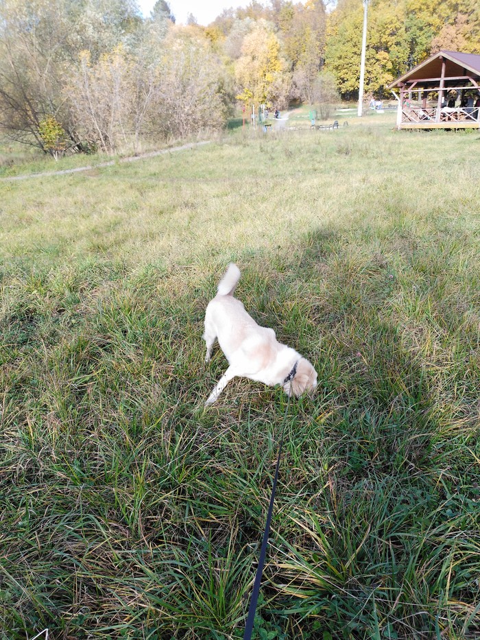 - Саймон, гулять(сейчас живем на даче и его выпускаю на участке)