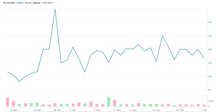 Фонд торгуется на Московской фондовой бирже и базовая валюта фонда – российский рубль. Стоимость одной акции фонда варьируется в пределах 100 рублей.