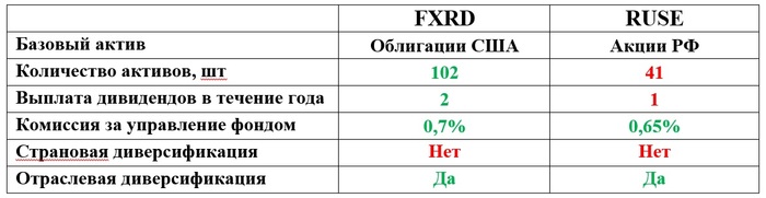 Давайте сравним основные параметры двух фондов, которые выплачивают дивиденды, - это FXRD и RUSE.