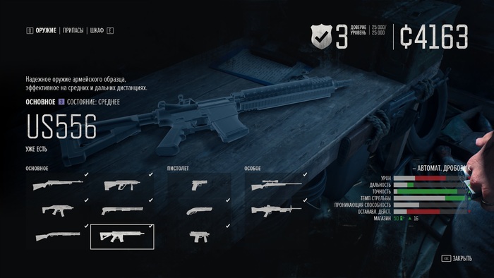 Весь огнестрел делится на три группы: основное (автоматы, винтовки, дробовики), второстепенное (пистолеты и пистолет-пулеметы), особое (пулеметы, снайперские винтовки, и, конечно же, наш любимый арбалет).