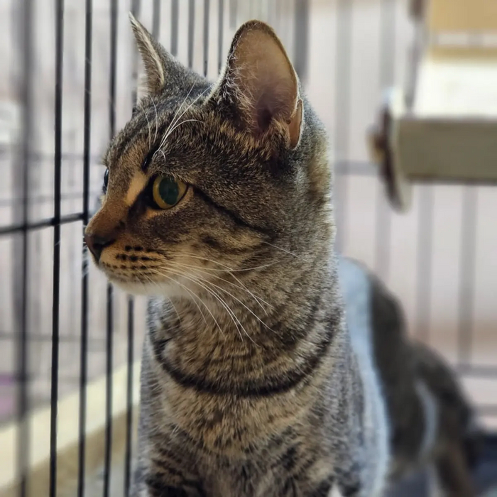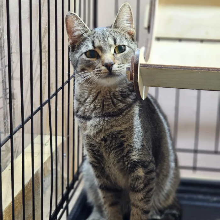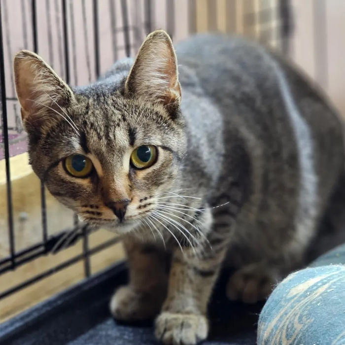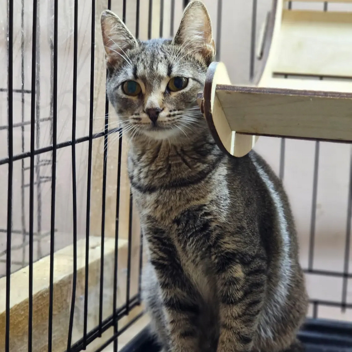 Лили - маленький тигр, который интересуется всем происходящим и любит свои игрушки. Она очень подвижный которебенок, ей хочется все исследовать, но размеры клеточки не позволяют сделать это в полную силу.