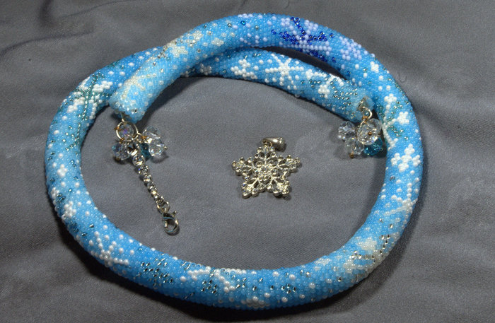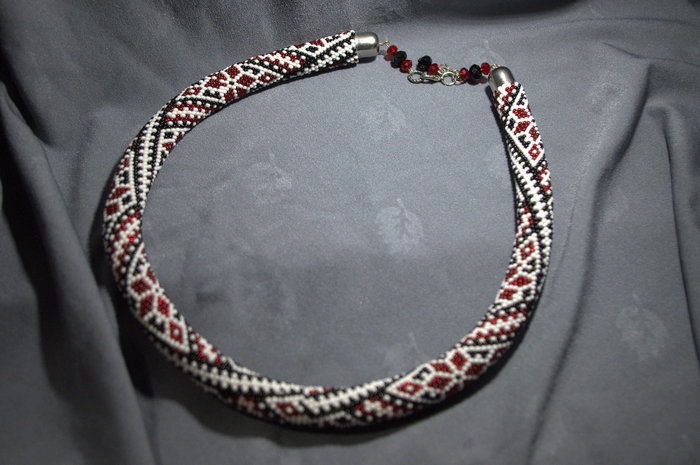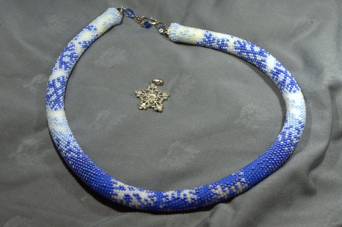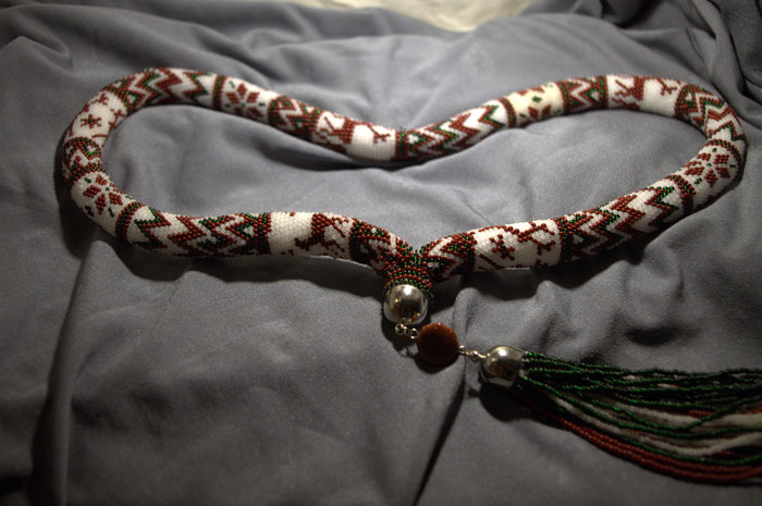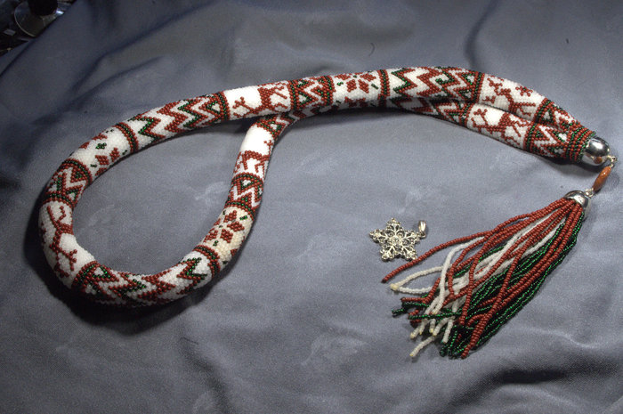 Одним из моих хобби является вязание жгутов из бисера. Вот в преддверии Нового Года и обменов подарками с Анонимными Дедами Морозами, захотелось жгутов на эту тему. Вот,например, с оленями. Длина жгута 80 см +15см подвеска, неразъёмный.