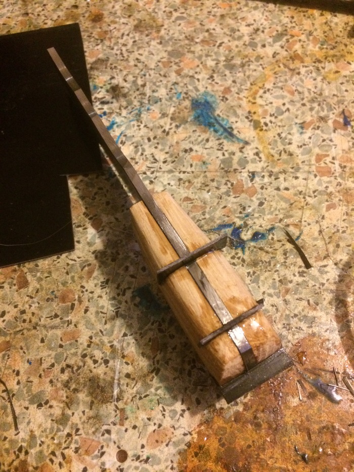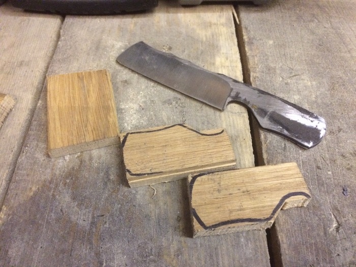 Теперь предварительная склейка и обтачивание собственно дерева по контуру рукояти.