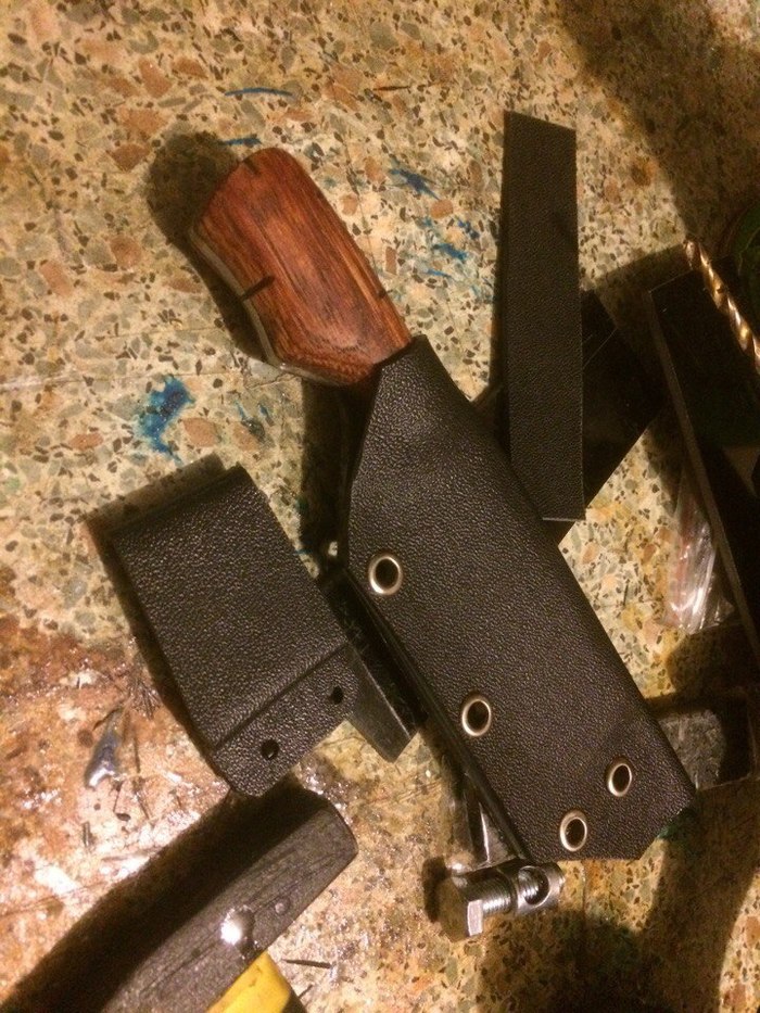 Но в чём то надо нож носить, дабы не порезаться. поэтому приступаем к изготовлению ножен. для этого берем листовой АБС и с помощью фена формуем основу., и клипсу.
