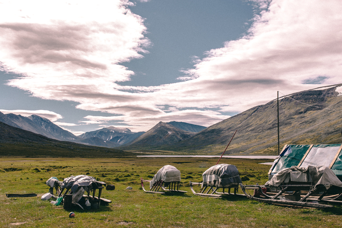 Чем дальше мы шли, тем непроходимее становились болота. Нас это уже не сильно волновало - вдалеке виднелась юрта. Это была самая настоящая юрта, сделанная из стволов деревьев и оленьих шкур. Кругом стояли сани и бегали собаки, которых я поначалу приняла за лис.