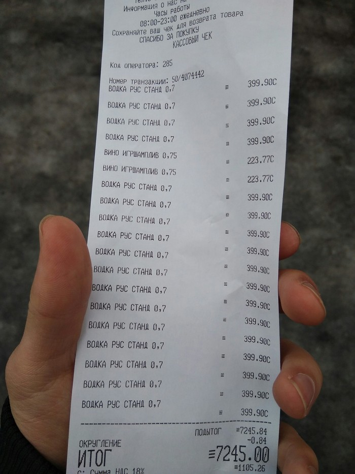 Зашел сегодня в Ашан закупится к новому году(водка "Русский стандарт 0,7л за 399, а 1л по акции за по-моему 589). Подходит моя очередь и кассир спрашивает: