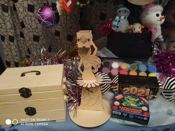 Ну, как тут не поверить в Деда Мороза!? Конечно, он есть, потому что подарки от него мы получили под самый Старый Новый год! Наш Дед Мороз оказался самым внимательным и старательным, потому, что сделал подарки не на один день и даже не на один год. У нас теперь есть замечательная шкатулка, которую мы с дочерью сможем расписать на свой вкус, изящная салфетница для праздничного стола, настольная игра для всей семьи и вкусные конфетки (правда, недолговечные).