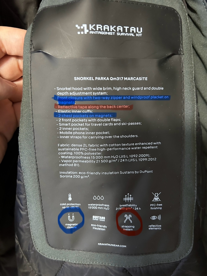 И все таки отсутствие заявленных строп не давало мне покоя. Задал этот вопрос продавцу, заодно так же скинул бирку куртки где стропы заявлены, резонно предположив что раз заявлены - должны же быть. Продавец в очередной раз подтвердил что строп нет, предположив что они утеряны при транспортировке. Предложил скидку. Я подумал что носить куртку за спиной мне не принципиально согласился на скидку в 2к, предложив продавцу скинуть деньги на карту после получения заказа, чтобы не отменять покупку (деньги могут возвращаться долго на счет). Ударили по рукам.