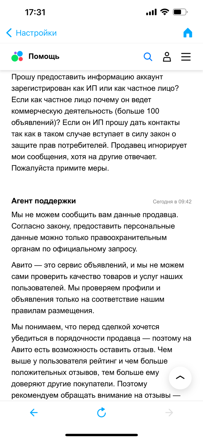 Авито - тоже говорит иди на хуй признаков нарушений правил сайта не видит. Отправляет в суд. Давать при этом данные о продавце для похода в суд отказывается. Какой-то порочный круг)))