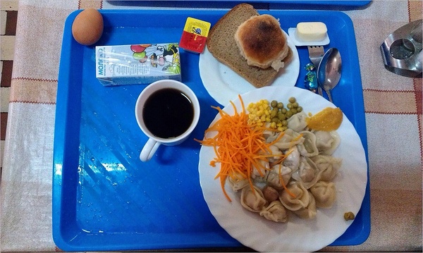 По пятницам в солдатской столовой бойцу СпН предложат на завтрак примерно такое меню: отварное куриное яйцо, порционное коровье масло, хлеб, карамель, чай, булочка к чаю. И пельмени. Пельмени можно сдобрить консервированной сладкой кукурузой, зелёным горошком мозговых сортов, отварной свеклой.