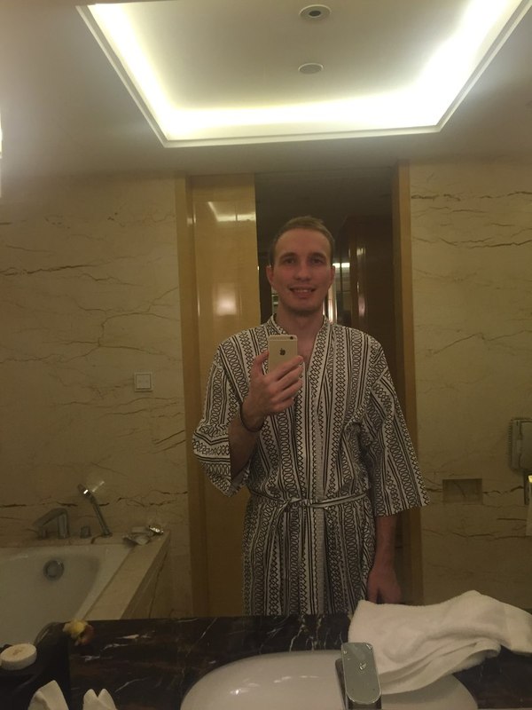 Короче, поужинав, мы поехали в отель. По прибытии я ощутил себя рок-звездой и преуспевающим бизнесменом одновременно. При описании интерьера 2 слова приходили на ум – свет и золото. Войдя в номер, я сразу же сделал сальто на кровать и включил телек, на котором нашел даже один русский канал. Услышав родную речь, я пустил скупую слезу и даже немного процитировал Есенина. А затем выполнил программу минимум проживания в отеле: ванна с пеной, халат, халявные фрукты и лег спать. Завтра предстоял насыщенный день.