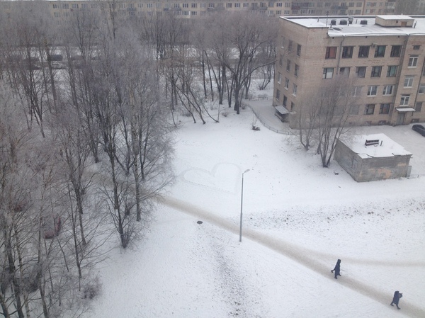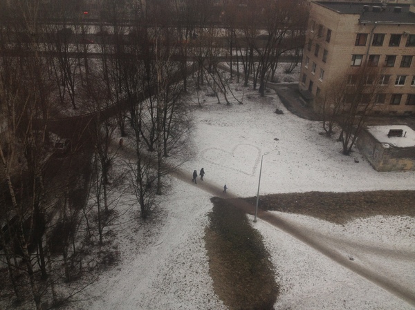 Не могу сказать точно, но где-то 1,5 - 2 месяца наблюдаю из окна своего дома такую вот романтичную картину. Кто-то сделал весьма внушительных размеров сердце прямо перед нашим домом.