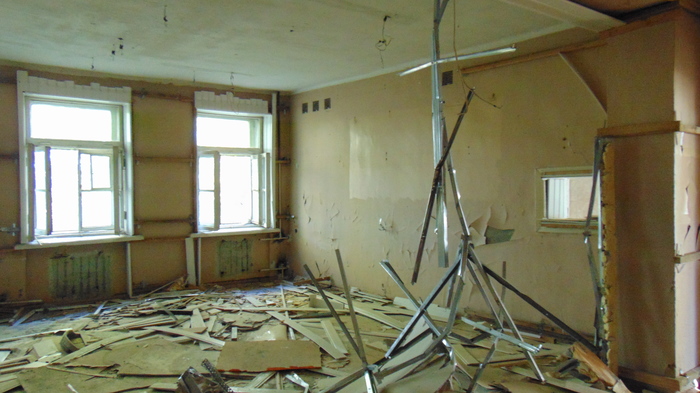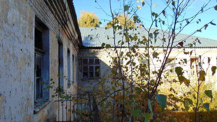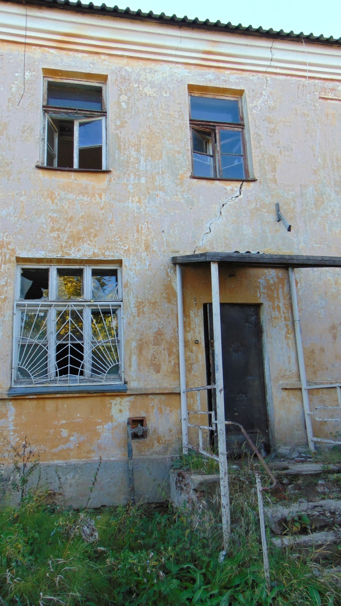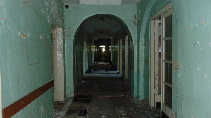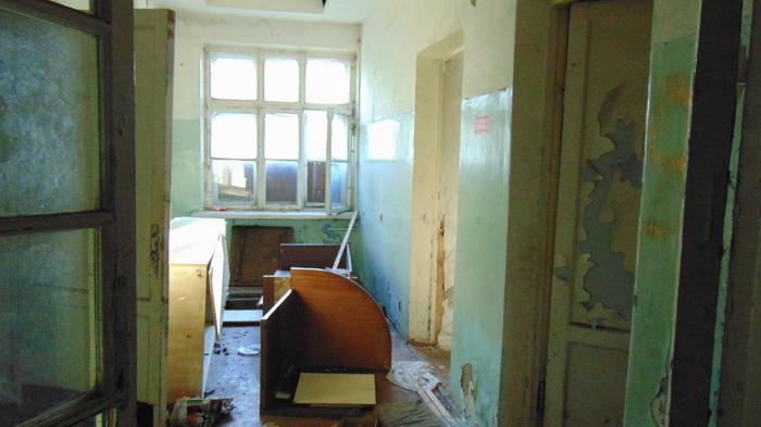 Конечно, для человека, не связанного с этим местом, -это просто пустой дом, здорово раздестроенный и, видимо, несший в последнее время другое, - не медицинское назначение. Супруг же выискивал в мёртвом здании знакомые комнаты, палаты... Ну, что ж... пройдём "по волнам его памяти" и заглянем внутрь, почти в прошлое, которое, похоже, дало трещину.