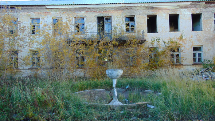 Интересно, какого года это здание, сколько прошло через него судеб?.. Несмотря, по всей видимости, на относительно не очень давно перекрытую крышу, штукатурка облезла и обнажились щели в растворе между кирпичей, создавая ассоциацию с зубами при пародонтозе. И что это, вдруг, такие стоматологические сравнения? Наверно, потому что тогда, давным-давно, первый зуб был выдран здесь, - когда зубодёр-стоматолог чуть не устроил абсцесс и температура дошла до 41!. А потом было ещё много чего: и тяжёлый отит, с которым пришлось лечится в Красногорском ОВГ; изучение премудрости проявки флюорографических снимков, а потом постижение науки делать анализы. Всё ж таки - санинструктор младших медицинских специалистов, чёрт возьми, - должность обязывает. Потом был честный, на самом деле по зрению, откос от отправки в ДРА(Афганистан)... Но была и яркая весна с капелью и "гарна дивчина", дочка ст. прапорщика, - тяжеловесного пьющего мужика, которая подрабатывала уборщицей в госпитале... А ещё долгий, абсолютно невозможный для многих военнослужащих срочной службы, отдых и безделье в компании прибившихся сюда "гнать дуру" и, видимо, проплаченных родителями москвичей... И вот старый, позабытый всеми, дом подслеповато поглядывал на нас своими уцелевшими стеклами в лучах осеннего заходящего солнца. Видимо, не работавший и в лучшие времена фонтан не сулил ничего, да и не принесли мы ему в дар три пушкинские розы... Видимо, мы прощались навсегда... Спасибо тебе, ДОМ!..