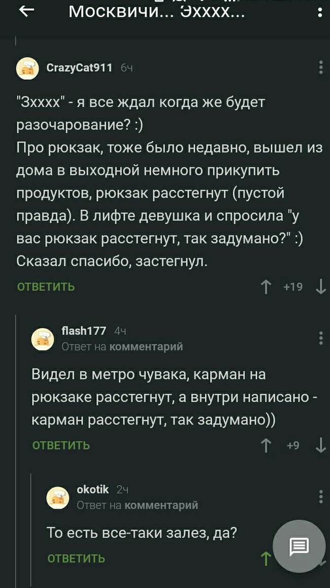 21 SSSerjio Скриншоты комментов Залез 6 лет назад #comment_133750178 Показать полностью 1 Комментарии на Пикабу Юмор Скриншот