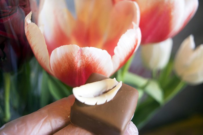 Раз уж меня увлёк шоколад, то было решено что помимо цветов все близкие девушки получат в подарок и мои конфеты.К сожалению, форма для конфет у меня была одна что замедляло процесс (с нетерпением жду когда заказанные формочки приедут с Али).