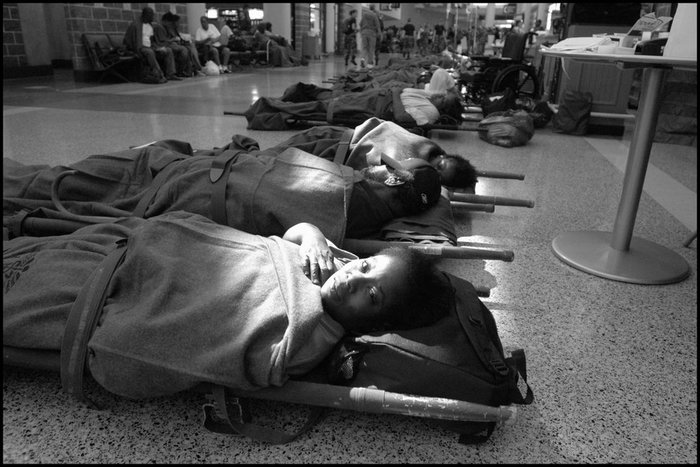 5. 4 сентября 2005 г. Пострадавшие после урагана "Катрина" в конференц - зале. Новый Орлеан.