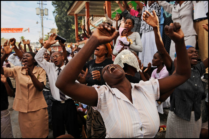 7. 31 января 2010 года, Порт-о-Пренс, Гаити - - - -После землятресения многие церкви и соборы разрушены в Порт-о-Пренсе, гаитяне молятся на улицах возле Марсова поля.
