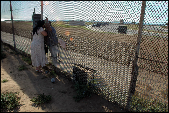6. 29 июля 2006 года, Тихуана, Мексика - - - мексиканская женщина, на мексиканской стороне пограничного ограждения, и мужчина на американской стороне, не в состоянии пересечь границу, чтобы быть друг с другом.