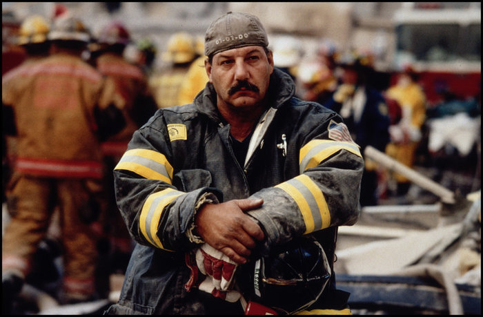 15. 12 сентября 2001 года, Манхэттен, Нью-Йорк, США - - - пожарный отдыхает после долгой ночи борьбы с пожарами и поиска жертв в завалах.