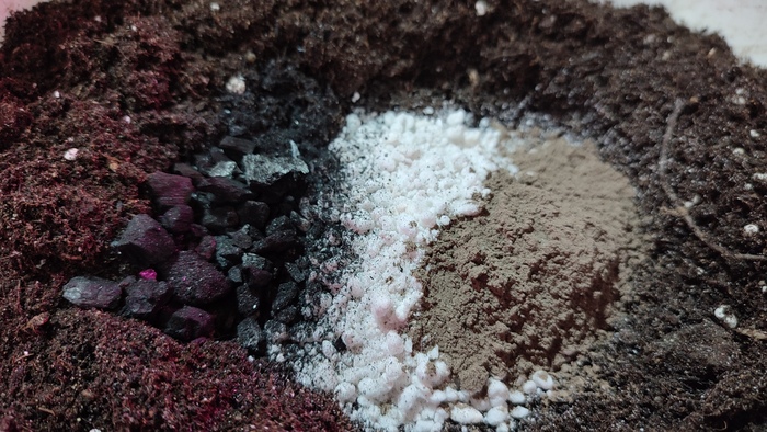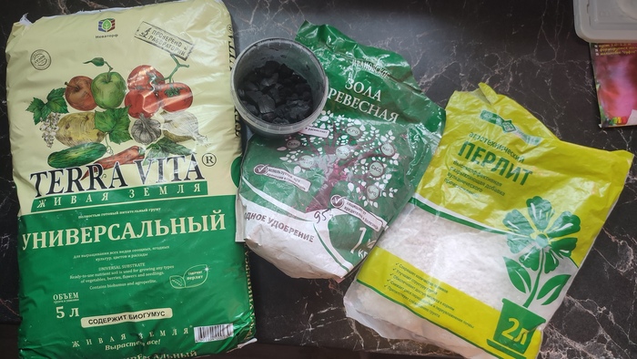 ВО ЧТО САЖАТЬ: я уже третий год использую грунт «Терра Вита» как основу (берите любой другой, в котором вы уверены). Главное, в составе не должен быть исключительно верховой торф. Добавляем перлит, вермикулит (по горсти на полтазика), уголь древесный раскрошенный (в идеале если есть, у меня - угли от березовых поленьев из мангала) или золу древесную (не увлекаться, немного припорошить). Для разрыхления можно и песку речного сыпануть.