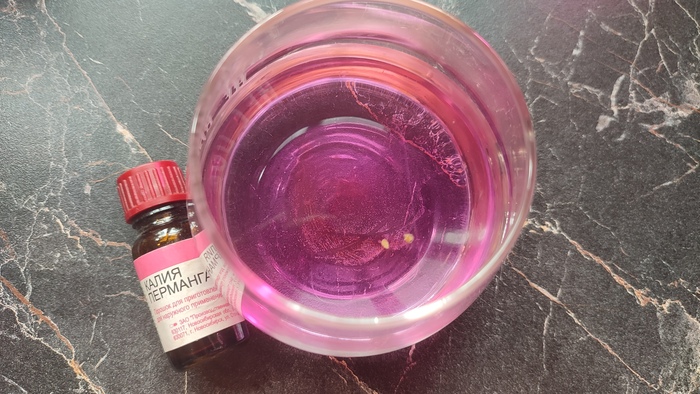 ПОДГОТОВИМ СЕМЕНА: малышат, как и почву, надо бы обеззаразить. Мы с мамой делаем просто – берем раствор марганцовки слабый и балякаем семечки в нем. Это даже больше для того, чтобы проверить на всхожесть: если даже после того, как вы размешали раствор ложкой, семечко не утонуло, значит, пустое (это бабушкин метод, особенно для своих собранных семян). Раствор ДОЛЖЕН БЫТЬ слабым, то есть, когда замешиваете, смотрите за кристалликами на дне – если их много осталось, раствор станет гуще и фиолетовей, и семечку можно загубить. Поэтому я привыкла делать так: добавлять марганцовку в воду в одной емкости (прозрачной), а потом, когда цвет будет оптимальным, переливать в другую. Итак, можно в этом растворе семечки замочить на часик или искупать – и сразу высаживать.