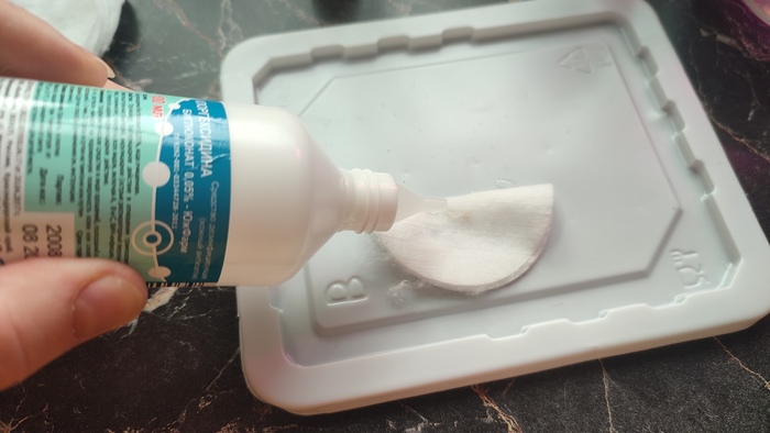 Или как вариант – берем ватный диск, выкладываем семечки на него, складываем диск напополам и промачиваем все либо хлоргексидином, либо перекисью водорода. Тоже можно оставить на полчаса-час.