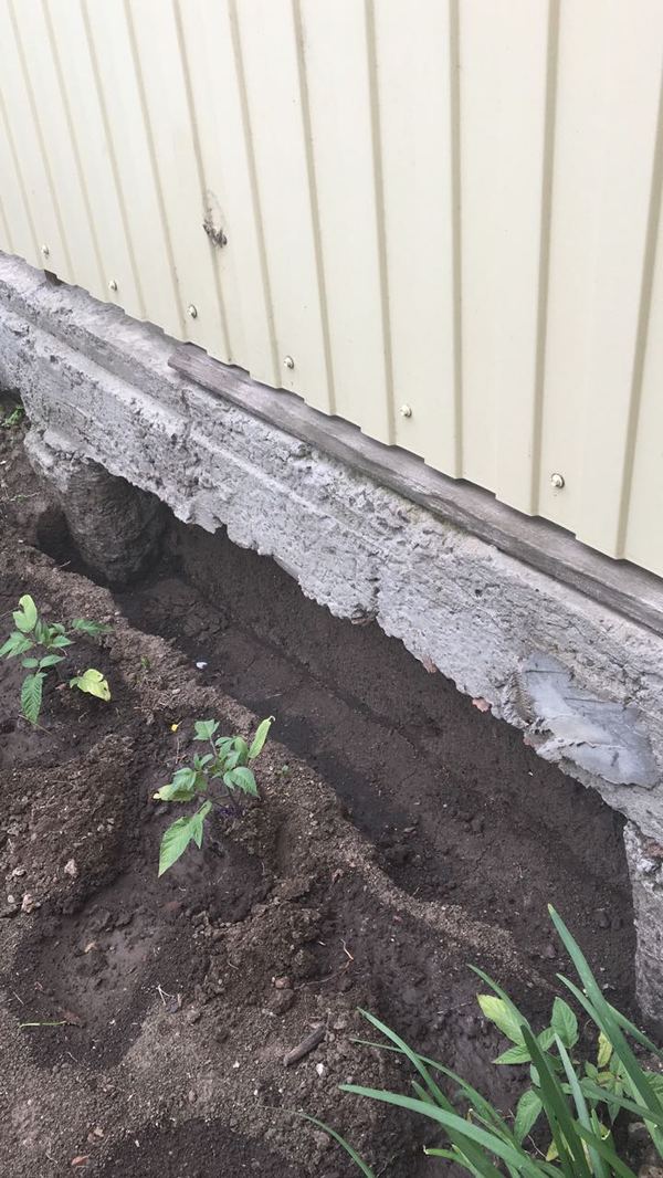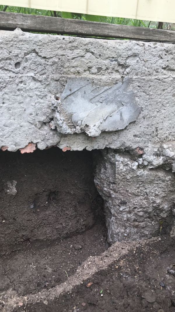 Доброго времени суток. Хочу спросить у знающих толк в вопросах фундамента. Существует на участке проблема. Года 4-5 назад был установлен забор и соответственно фундамент для него. Я при этом не присутствовал, даже не знаю что внутри кроме цементной смеси с щебнем (иногда проглядываются битый кирпич и шифер). Спустя эти 4-5 лет после установки цемент осыпался и получилась такая дырка на уровне земли. Возможно и уровень земли ниже стал (в связи с тем что участок не ровный пытались выровнять для грядок перетаскивая с места на место).