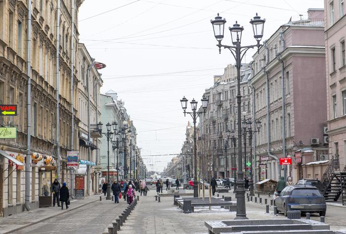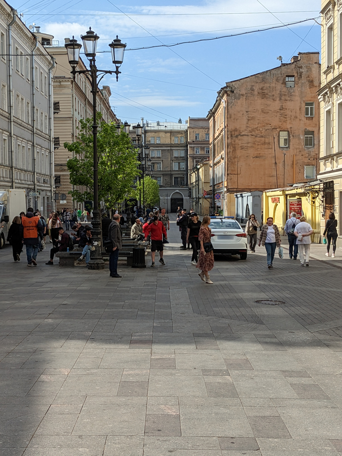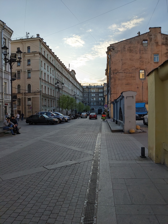 Вести повествование будем начиная со стороны Невского проспекта.По сути данная улица является проходной для большинства людей, которые ведут свой путь от Площади Восстания к Невскому Проспекту. Мало кто выбирает обходной путь, ведь если выбирать между "пешеходной улицей" и узким тротуаром на Невском проспекте рядом с оживленной дорогой, то выбор является очевидным.